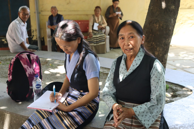 Eine der Betreuerinnen notiert sich, was es an Bedürfnissen gibt. Wir hören jedoch immer wieder, dass die alten Menschen im OPH Rajpur sehr zufrieden und bescheiden leben. |