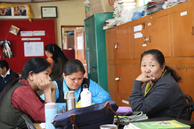 Im Lehrerzimmer geht es meist eng zu: Lehrerinnen beim Vorbereiten des Unterrichts. |