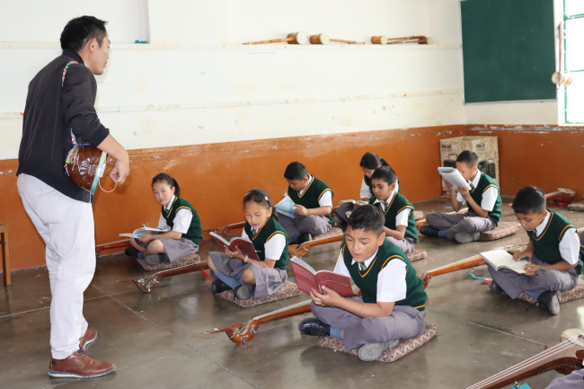 Im Musikunterricht wird großer Wert auf das Erlernen traditionell tibetischer Instrumente gelegt. |